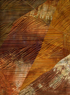 Cotton hand-dyes by the artist. Hand stitched with cotton, linen, silk, and rayon threads.