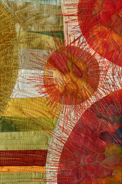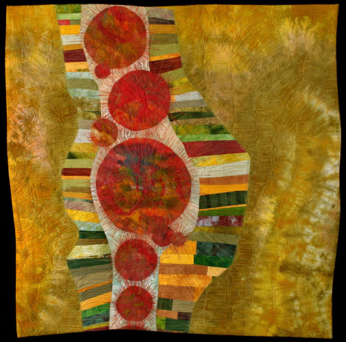 Machine pieced and raw-edge appliquéed. Machine quilted. Cotton hand-dyes by the artist and commercial cottons. Cotton/poly batting.