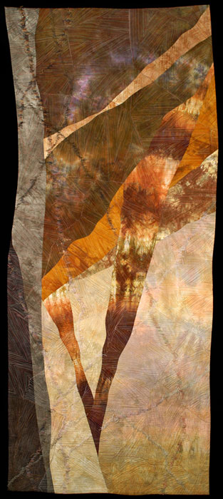 Cotton hand-dyes by the artist. Hand stitched with cotton, linen, silk, and rayon threads.