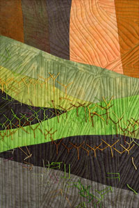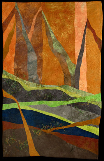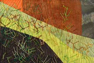 Machine pieced. Machine quilted, hand stitched. Cotton hand-dyes by the artist.
