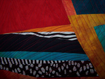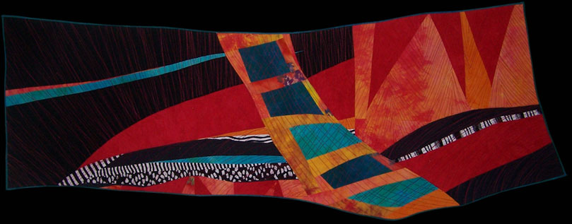 Machine pieced. Machine quilted. Cotton fabrics including hand dyes by the artist and by Liz Axford.