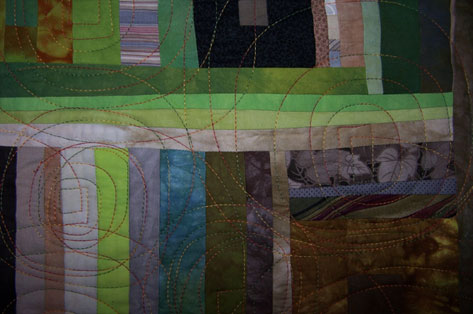 Cotton fabrics including hand dyes by the artist and commercial fabrics.